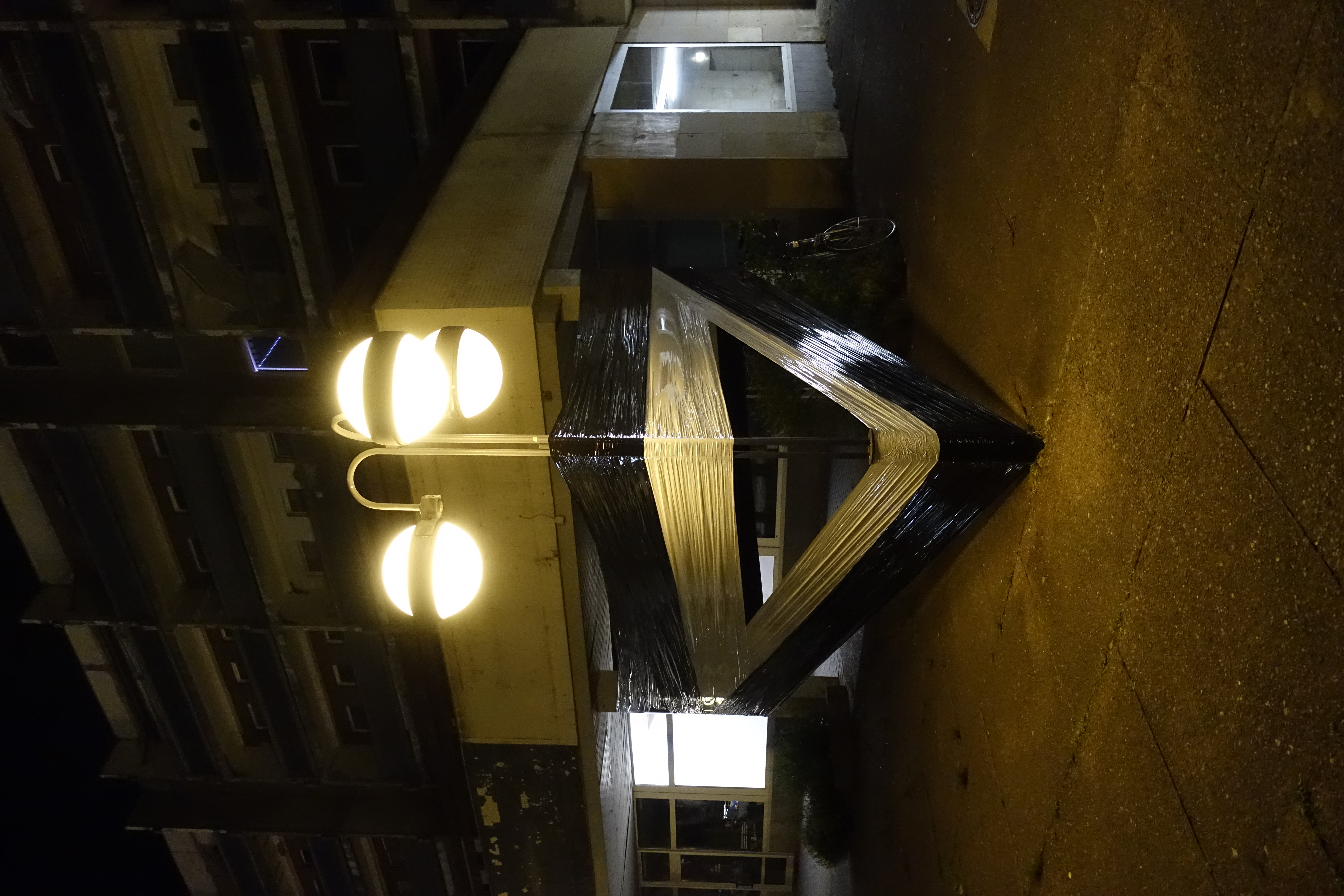 - ein räumlicher Eingriff mit Lampe und Fahrrad -