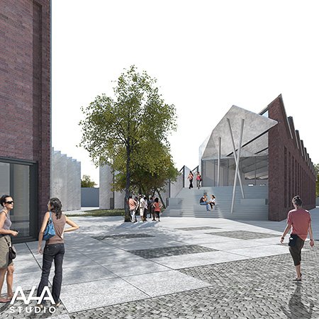 Eine besondere Form verbindet das alte Fabrikviertel mit dem kleinteiligen Wohnquartier. Sie schafft einen Ort für junge Menschen mit verschiedenen Wohn- und Arbeitsformen sowie Austausch mit den benachbarten Vierteln. Die markante Dachlandschaft des historischen Fabrikviertels gibt dem Studentwohnquatier ein charakteristisches Aussehen und ermöglicht eine helle und moderne Architektur.